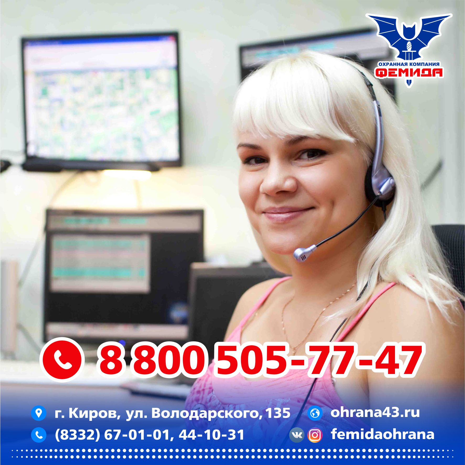 Теперь Вы можете бесплатно позвонить в Охранную Компанию «Фемида» по номеру 8 (800) 505-77-47, чтобы:
